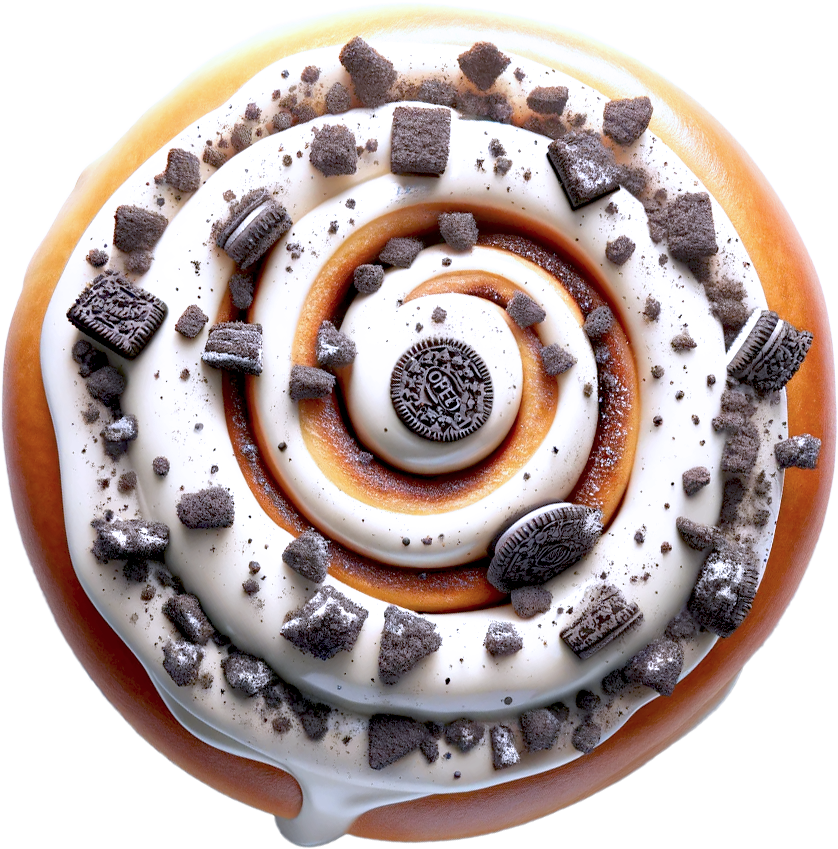 Zavodljiva kombinacija Oreo belog krema i mrvljenog Oreo keksa na cimet rolnici za pravi slatki užitak.