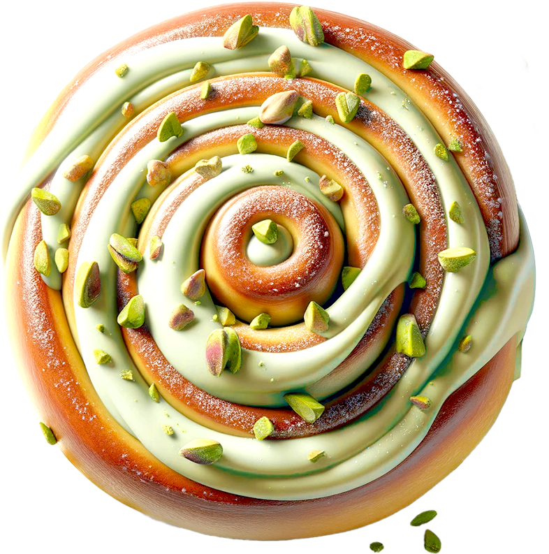 Egzotični užitak u svakom zalogaju, sa kremom i mrvljenim pistaćima koji savršeno dopunjuju cimet rolnicu.