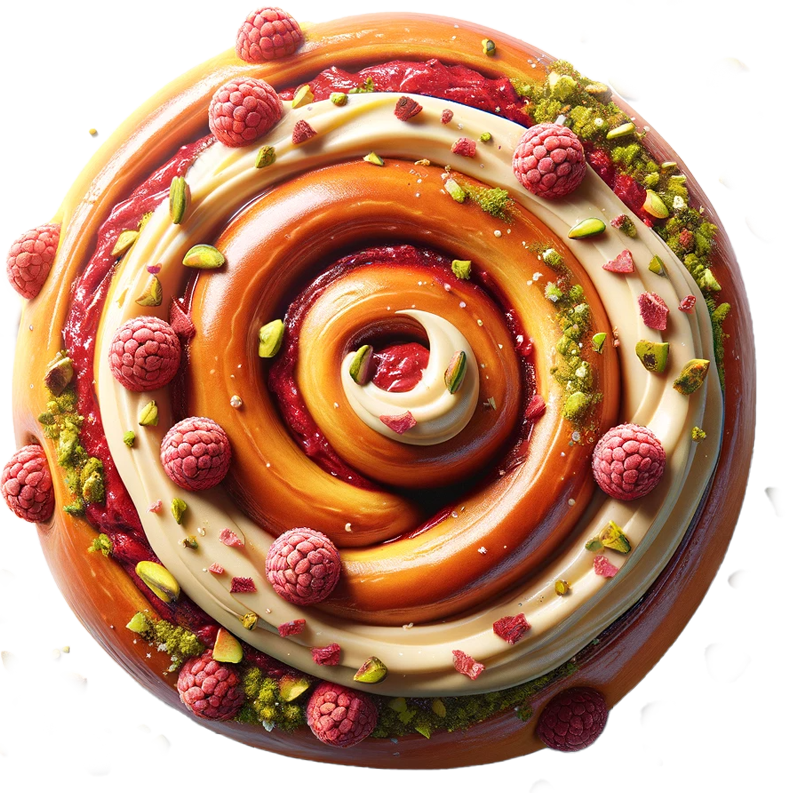 Savršena kombinacija sočne cimet rolnice i krema od pistaća i malina.